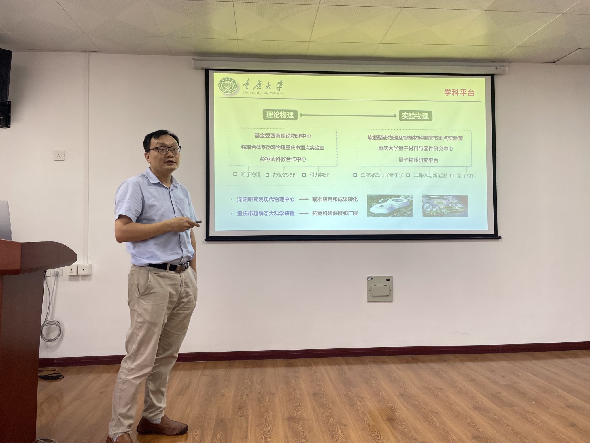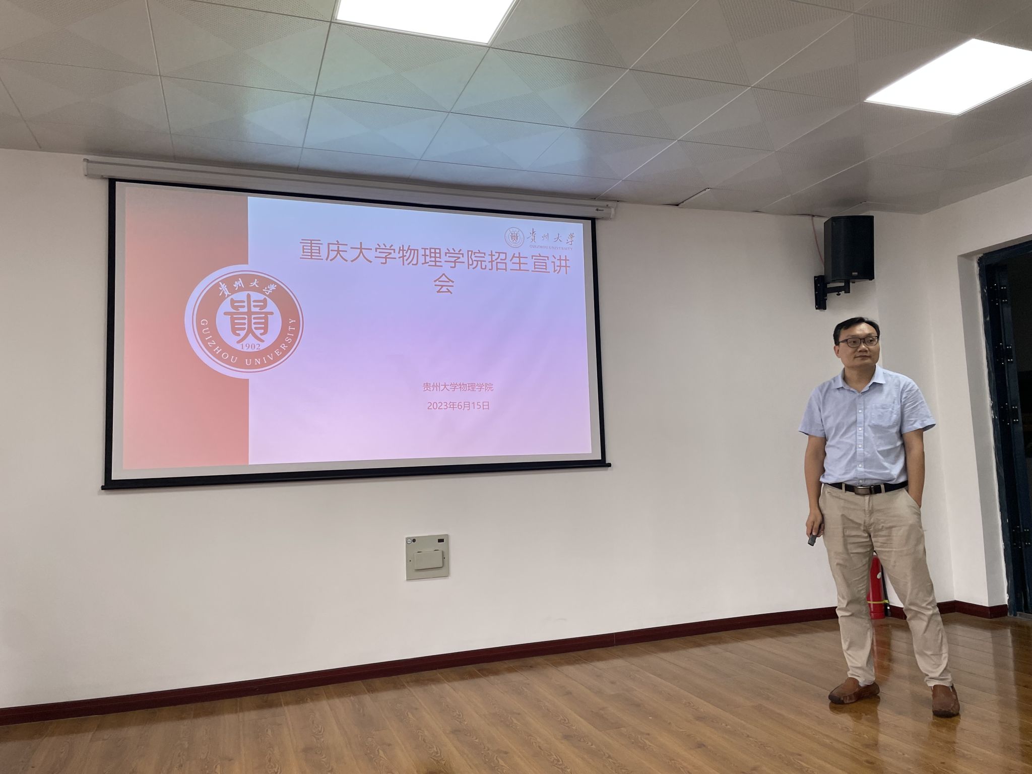 为加强研究生招生宣传力度,提升研究生生源质量,2023年6月15日-16日,公司主管研究生教育的副经理胡自翔教授,物理系主任秦思学教授和西南理论物理中心方向负责人李昕教授赴贵州大学和贵州民族大学进行了两场招生宣传。宣讲会由贵州大学委书记王更生教授和贵州民族大学物理系主任王声权教授主持。两次宣讲会吸引了近200名大三物理系的同学参加。胡自翔副经理从宏观经济形势、地区政策优势、公司发展态势和招生政策,校园生活环境等方面对公司物理学科做了整体介绍,并对公司暑期夏令营等活动进行了相关介绍;秦思学教授对物理系的团队和研究情况进行了详细的介绍,并对高能物理和粒子物理研究团队进行了详细的讲述;李昕教授对公司西南理论物理中心的发展和相关团队做了全面细致地介绍,并对天体物理与宇宙学方向进行了科普讲解和宣传。最后的答疑环节中,员工就推免生复试、奖学金、宿舍环境等问题踊跃提问,老师们一一解答并鼓励各位同学积极备考。