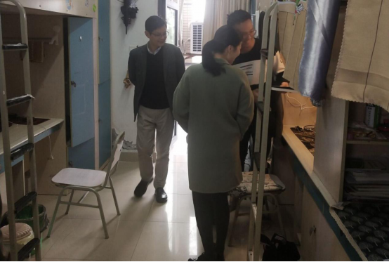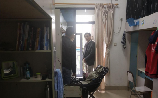 紧接着,余书记来到了大一寝室,大一寝室物品相对不多,显得更加清爽,但有些寝室因为通风不畅,寝室内的空气质量不好,存在异味,余涛老师对这种问题及时指出,督促员工们积极改正问题,进而改善寝室的学习生活环境。
