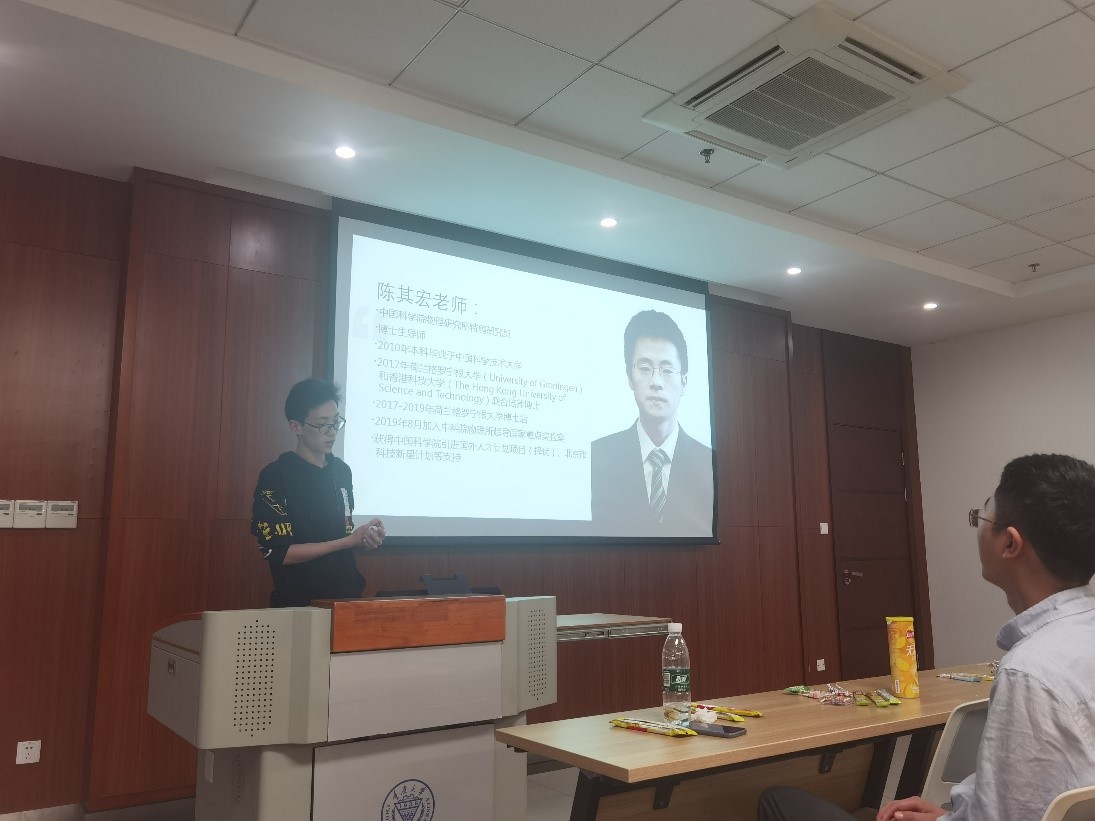 首先,由李林俊同学为陈其宏老师及其研究做了简单介绍,让我们在树立榜样的同时也对自己未来的道路有了一定的思考。