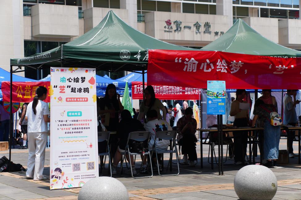 2024年4月28日,“渝心绘梦,‘艺’起涂鸦”乡村振兴活动在ballbet贝博官方网站虎溪校区一食堂南广场成功举办。此次活动由bb贝博艾弗森官方网站团委主办,青愿盈梦实践团承办,旨在通过艺术与科普的形式,助力乡村教育,传递爱与希望。