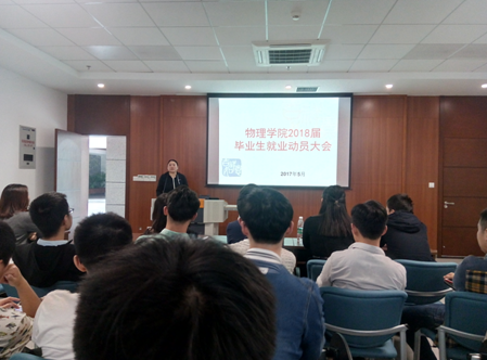 2017年5月10日下午14:00,2018届本科生就业动员大会在理科楼LA101顺利召开,公司党委副书记萧倩老师、2014级辅导员林玮老师、13级优秀毕业生代表及2014级全体同学到场参加本次动员大会。