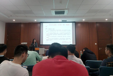 随后,林玮老师为同学们在求职的相关政策及手续上进行了详细的讲解、分析。林玮老师举出往年的事例,为同学们分析了在面试、实习、签订就业协议中同学们容易犯错的地方。大会中,林玮老师也分析了近几年公司毕业生的走向,提出“条条大路通职场”,同学们应对就业持积极主动的态度。