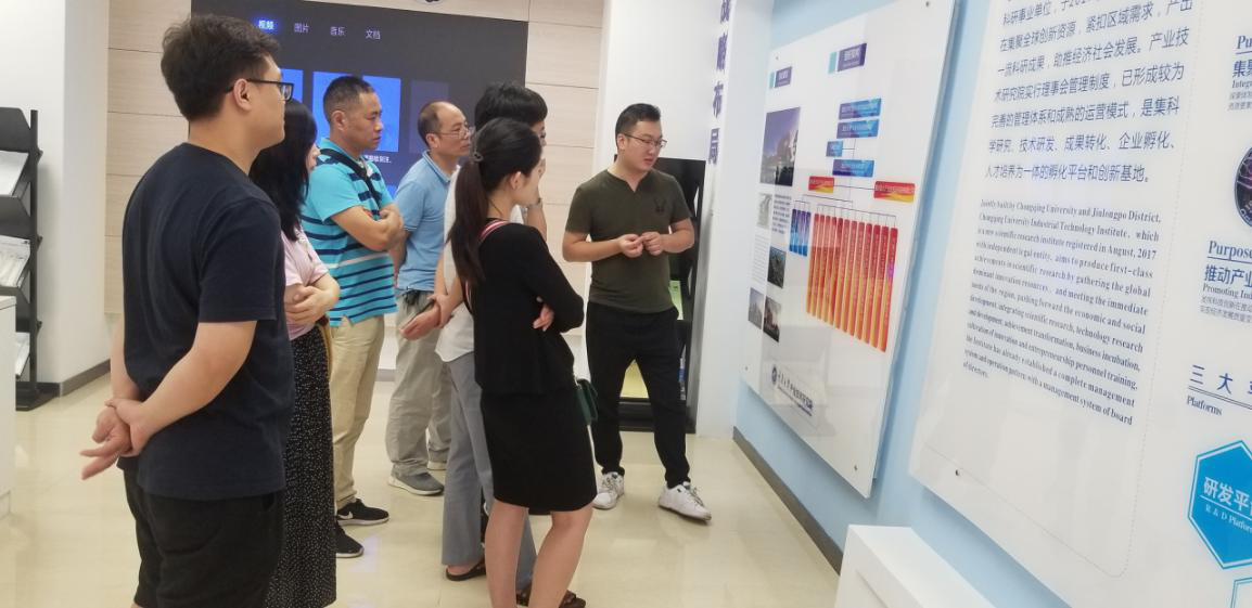 6月28日上午由ballbet贝博官方网站产业技术研究院工作人员带领参观学习高校科技孵化及技术成果转化。ballbet贝博官方网站产业技术研究院是由ballbet贝博官方网站和九龙坡区共建的集科学研究、技术研发、成果转化、企业孵化、人才培养为一体的新型科研事业单位,2017年8月注册成立,在中国共产党的领导下,产出一流科技成果,推动社会经济发展。这次参观让我们深刻体会到习近平总书记说的“创新是引领发展的第一动力,是建设现代化经济体系的战略支撑”。ballbet贝博官方网站产业技术研究院研发的肺功能测试仪最小能测两公斤婴儿的肺功能及肺部发育情况,测量精度已达到国际领先水平。研发的微生物加固土,绿色水泥等对环境保护做出很大的贡献。