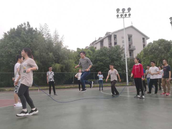 首先,两个党支部在赛前各自分工,选出参赛队员。在进行了各项准备活动后,活动便一一开展。第一个进行的项目是两人三足,各支部分别派出四位男同志、两位女同志进行比拼,在短暂的适应期后,比赛很快开始。因为人数不多,赛程也不长,比赛很快结束,第一支部获得了胜利。第二个项目是跳大绳,有的同志十分熟练,有的同志在大胆尝试后也成功掌握跳大绳的要领。通过紧张激烈的比赛,最终第一支部在有五位同志连续优质发挥的情况下再次取得胜利。第三个项目叫做“躲避圈”,每个支部派出4个人尽量站在一个尽可能小的圈内,给出一分钟来商量姿势与对策,一分钟后比拼哪个组的圈更小。因为大家都想到了合适的方法使得四个人围在一起只有一个人的脚在地上,两个支部打平。最后一个项目是夹球跑,游戏开始后,每队队员先将一个气球吹满,然后两人通过后背将气球夹起来,将气球运至终点区域。本着加深支部之间的交流的本意,两支部派出的女生之间进行了合作,这场友谊赛也顺利落下帷幕。
