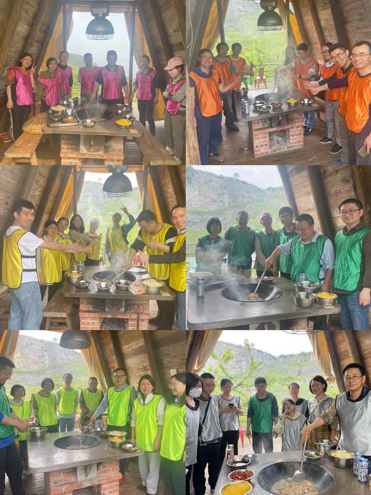 烹饪完毕后,专业厨师对各组的柴火鸡进行了品评。老师们围着地锅吃着肉,聊着在工作和生活中遇到的趣事和心事。饭后大家相约一起爬山、散步、赏花。现场氛围热闹非凡、其乐融融,虽不是家人,却更胜似家人。
