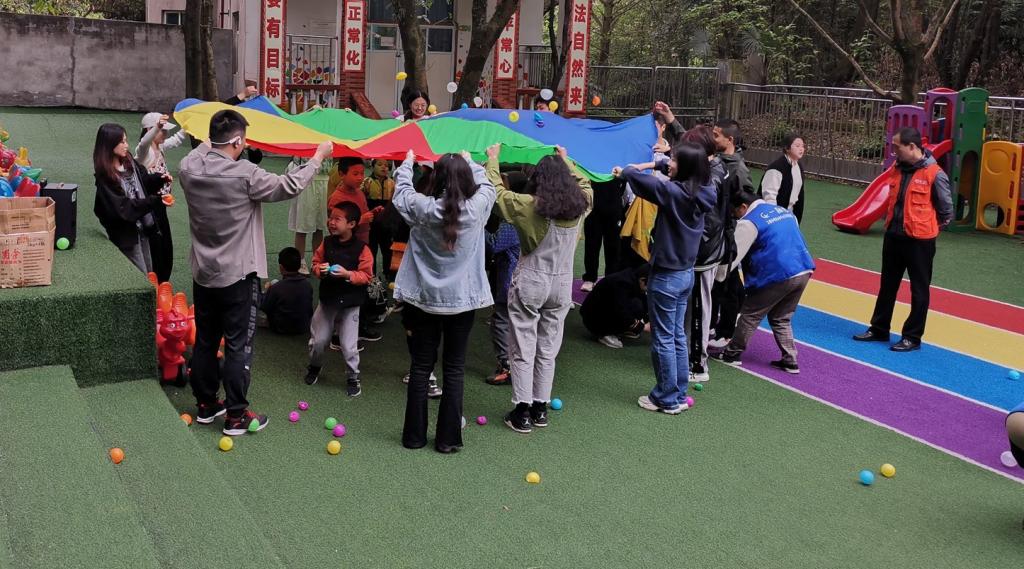 重庆沙坪坝区乐一融合特殊需要儿童康复托养中心位于重庆市沙坪坝区歌乐山镇天池村,是一家主要针对自闭症、智力障碍、语言发育障碍等儿童及青少年的特殊教育康复托养。2023年4月9日上午8.30半支部所有同志在ballbet贝博官方网站虎溪校区西二门集合,分成了几个小队自行打车去歌乐山。到达园区后,冉老师为支部同志们讲解了注意事项。然后组织支部的男同学为小朋友们布置场地。
