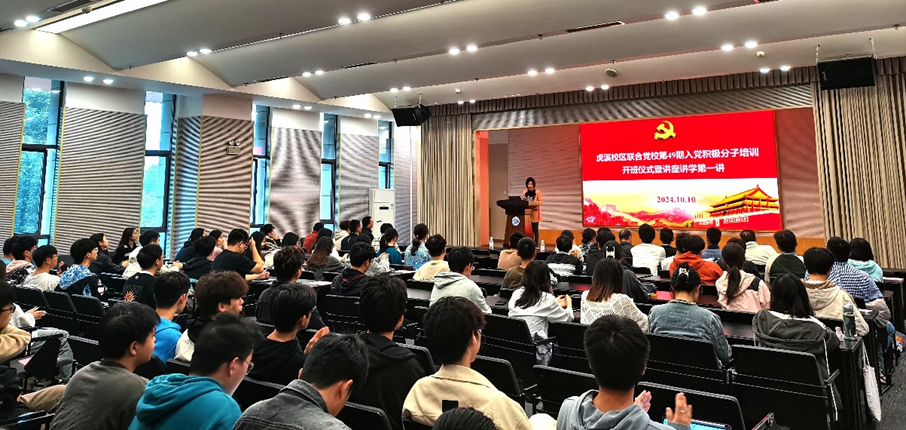 为深入学习贯彻习近平新时代中国特色社会主义思想,全面学习贯彻党的二十大精神和二十届三中全会精神,切实提升入党积极分子培训工作质量,结合公司发展党员工作整体安排,2024年10月10日下午,虎溪校区联合党校在虎溪校区图书馆1F-9报告厅举行了第49期入党积极分子培训开班仪式暨讲座讲学第一讲。