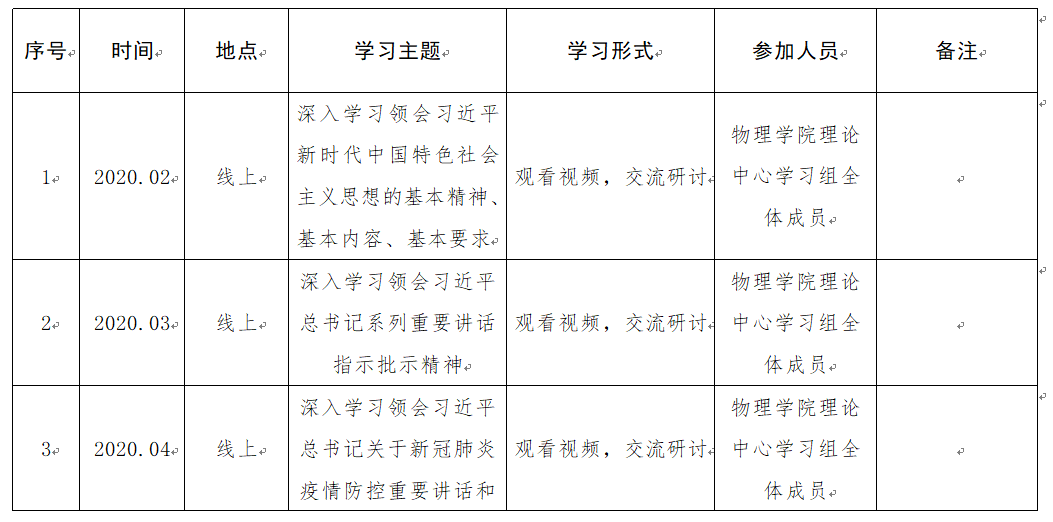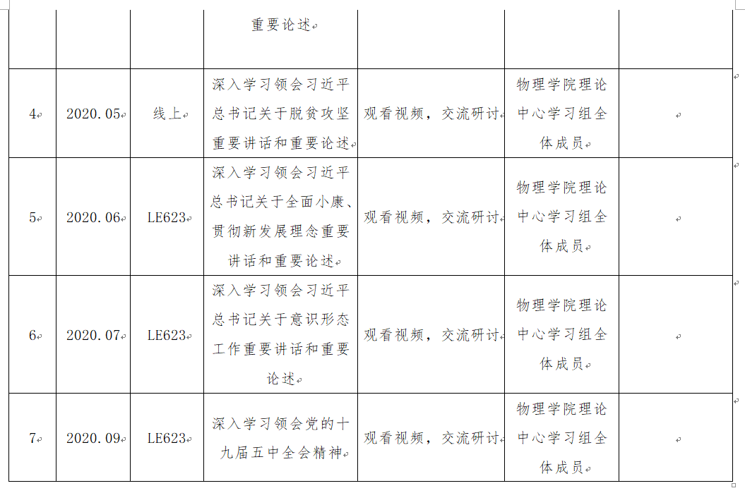 2020年党委理论中心学习组学习计划表