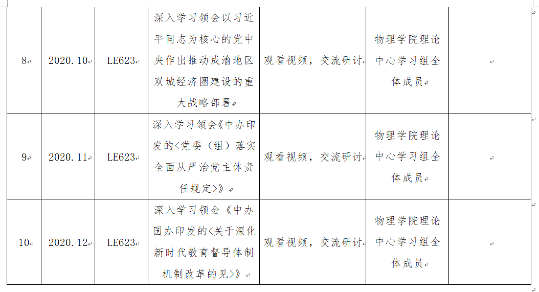 2020年下半年党委理论中心学习组学习计划表(补充)