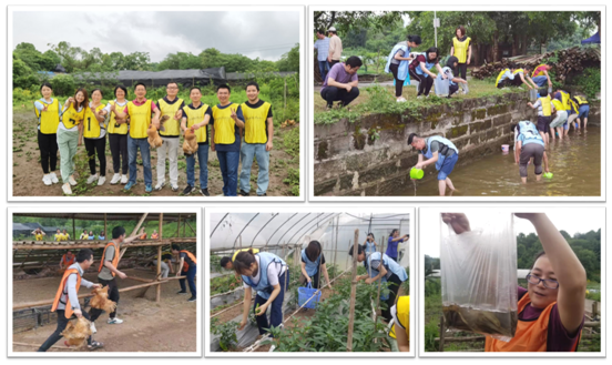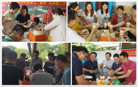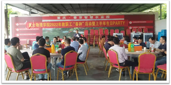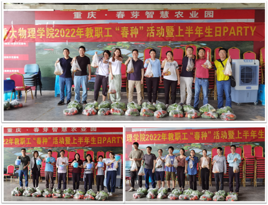 当日上午集体乘车到春芽农场,在农场主带领下参观了蔬菜大棚,里面黄瓜、西红柿、丝瓜、藤藤菜等应季蔬菜应有尽有,体验养殖鸡、鸭、羊、牛、猪的乐趣。中午时分大家一起过了个集体生日,庆生会现场寿星们一起点蜡烛、唱生日歌、切蛋糕,互赠温馨的祝福,品尝甜甜的蛋糕,让每位老师都感到心里暖暖的,切实感受到物院大家庭温馨和谐的氛围。