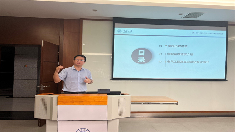 第五位是电气工程公司的张淮清教授,他依次介绍了电气工程公司的公司历史沿革,公司的基本情况,以及电气工程及其自动化专业的简介。他用简洁明了的话语给同学们讲解了何为电气及其自动化,并且指出电力资源是当今使用最广泛的二次能源类型,因而研究内容深厚,未来发展前景依旧广阔。