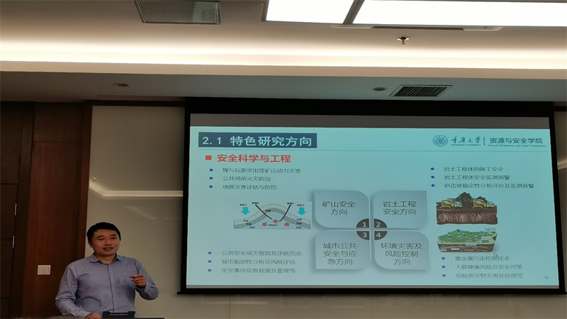 交流会首先由资源与安全公司陈结教授开始介绍。他从公司的概况说起,依次介绍了资源与安全公司的特色研究方向,资源与安全专业的未来发展等激起了在场同学们极大的好奇与兴趣,分享结束后同学们更是提出了许多有趣且极具想象力的问题。