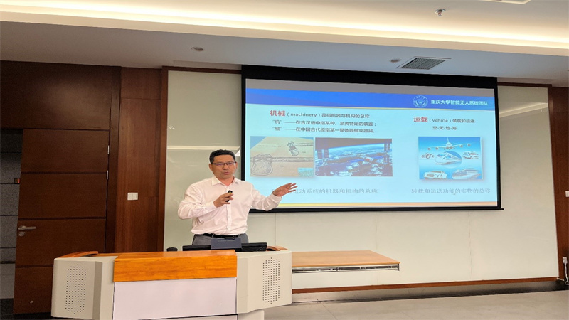 第四位分享的是来自机械与运载工程公司的罗均教授,与他一并出席的还有智能无人系统课题组的蒲华艳教授和其他老师们。罗均教授以机械与运载工程的新兴交叉学科以及大型科研团队的介绍为主要内容,向同学们介绍了高速重载传动与系统团队、机器人核心基础部件团队、高性能智能制造技术与装备团队以及智能无人系统团队等团队的情况。