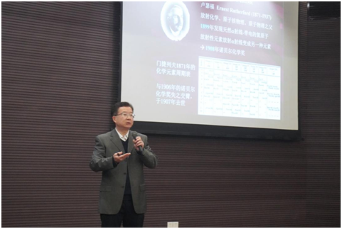 揭牌仪式后,中国科公司理论物理研究所邹冰松院士以《强相互作用诺贝尔物理学奖漫谈》为题为书院师生开讲“书院第一课”。邹院士引领同学们回顾了强相互作用研究发展过程中诺贝尔奖等里程碑工作,介绍了人们对强相互作用认识的历程及目前的前沿概况。同学们听得津津有味,并在问答环节中踊跃提问。
