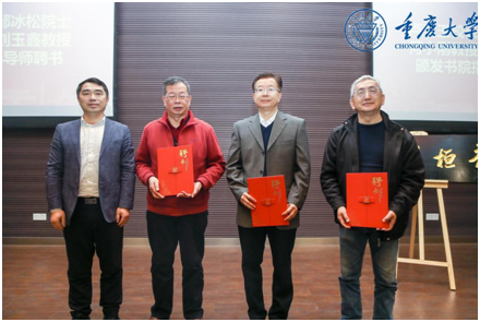 随后,王树新董事长为蔡荣根院士颁发了彭桓武书院名誉经理聘书。卢义玉副董事长为邹冰松院士、何小刚教授、刘玉鑫教授颁发了书院指导导师聘书。