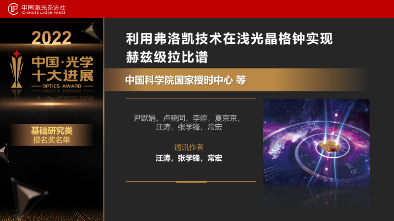 bb贝博艾弗森官方网站汪涛,张学锋研究团队和国家授时中心“巴渝学者”常宏研究团队合作的“首次实现非重力压制下的锶原子浅光晶格赫兹窄谱”工作荣获“2022中国光学十大进展”提名奖(基础研究类)。该工作是国际上首次利用弗洛凯技术在锶原子浅光晶格钟平台上将kHz的谱线压窄到Hz级别。该实验不仅为量子精密测量提供了新的思路,也向空间载星载光钟迈出了重要的一步。