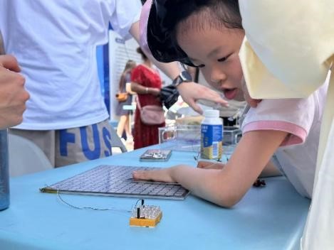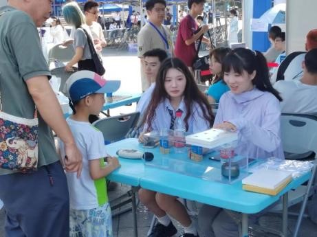 公司黄映洲教授科研团队组织研发的“通风降噪声学超材料”,为声学降噪提供了新思路和新方案,受到了业界和学术界的高度关注。该项目主要应用到亥姆霍兹谐振腔这个经典声学器件,当入射声波的频率接近谐振腔的固有频率时,孔颈的空气柱产生强烈振动,在振动过程中,由于克服摩擦阻力而消耗声能,从而实现降噪。该项目不仅展示科技创新在解决生活中的实际问题的应用,还突出了青年学子在科技创新的重要作用。公司郭恒宇教授科研团队带来的摩擦发电实验基于电负性和导电性原理,开发了水滴发电和电极板发电的物理实验,让同学们切身体会摩擦发电的奥秘。