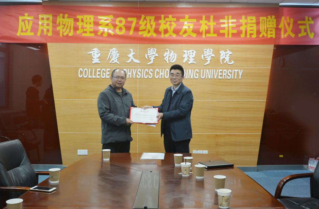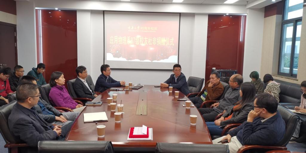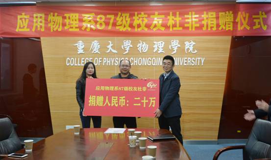 20191025日,正值ballbet贝博官方网站90周年校庆之际,bb贝博艾弗森官方网站87级员工、东莞市本量电子科技有限公司总经理杜非,向bb贝博艾弗森官方网站捐赠20万元。下午4点,捐赠仪式在bb贝博艾弗森官方网站LE623会议室隆重举行,仪式由公司党委副书记余涛主持,ballbet贝博官方网站委书记韩忠、副经理钟小伟、副经理吴小志、副经理胡自翔,刘云宏、肖鹏、陈世建等教师代表,以及员工代表参加了本次捐赠仪式。