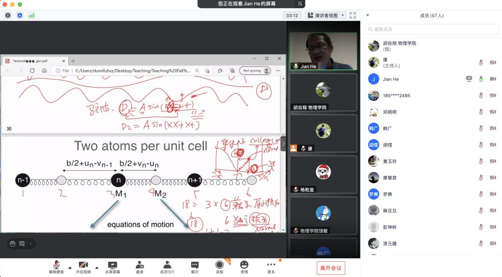 为进一步做好“后疫情时期”员工国际交流工作,夯实员工专业基础,拓宽员工国际视野,2021年1月26日至1月30日,克莱姆森大学贺健教授受邀为公司师生开展线上《现代固体物理》系列讲座。讲座由周小元老师主持,通过线下和线上两种参与方式公司近100名研究生参加了此次讲座。贺健教授将固体物理的基础知识与近现代材料物理的发展特别是输运理论在实际材料中的应用相结合,主要讲解了固体物理晶格振动与晶体的热学性质、能带理论、晶体中电子在电场和磁场中运动和金属电子论四章内容。在讲座进行中,会议室秩序井然,员工提问踊跃,研讨氛围浓厚,取得了良好的学术交流效果。